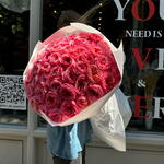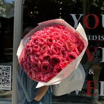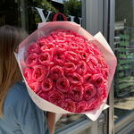 Букет красивый получился. Доставили немного позже назначенного времени, не критично для нас это было. Фото отчет сделали быстро. Доставка считаю дорогая, плюс большие розы не первой свежести были.