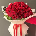 Red rose - 51 pcs Ribbon - 1 pcs decorative paper - 7 pcs