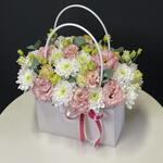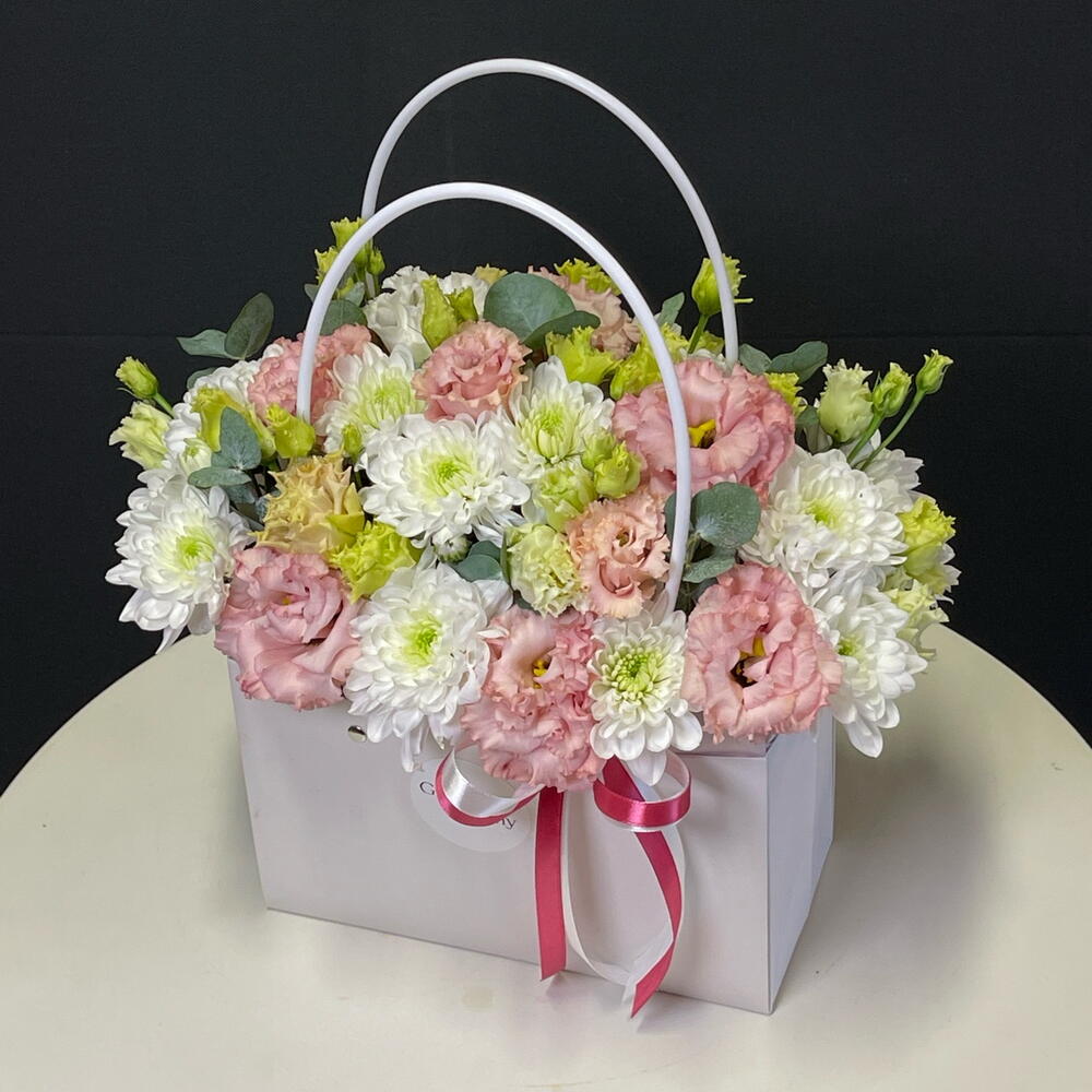 Eustoma - 4 pcs Box - 1 pcs Chrysanthemum - 3 pcs eucalyptus - 5 pcs
