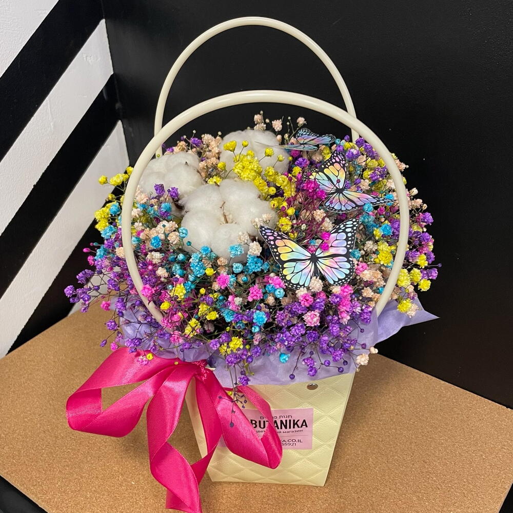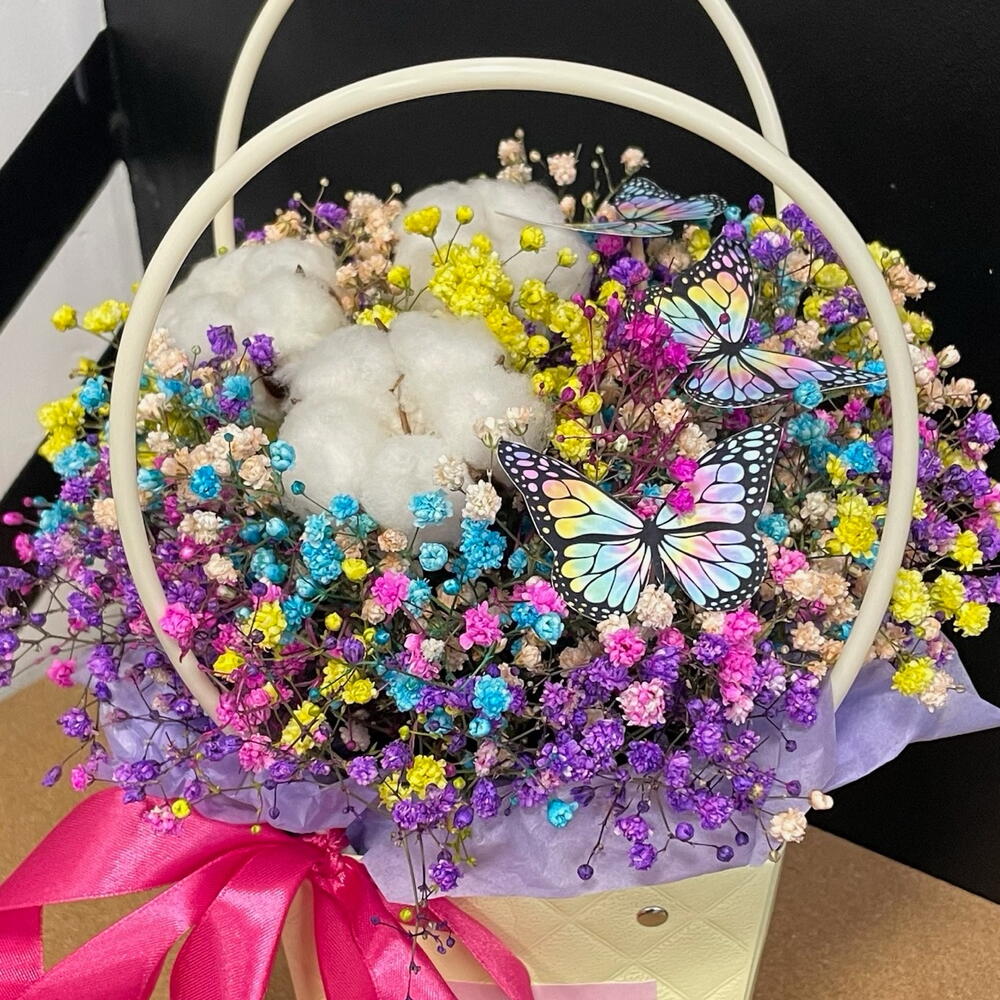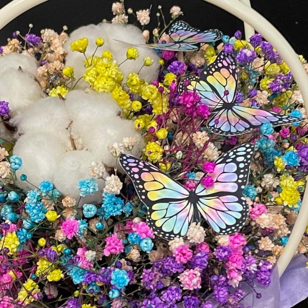 Gypsophila - 11 pcs flower box - 1 pcs cotton natural - 3 pcs butterfly - 3 pcs