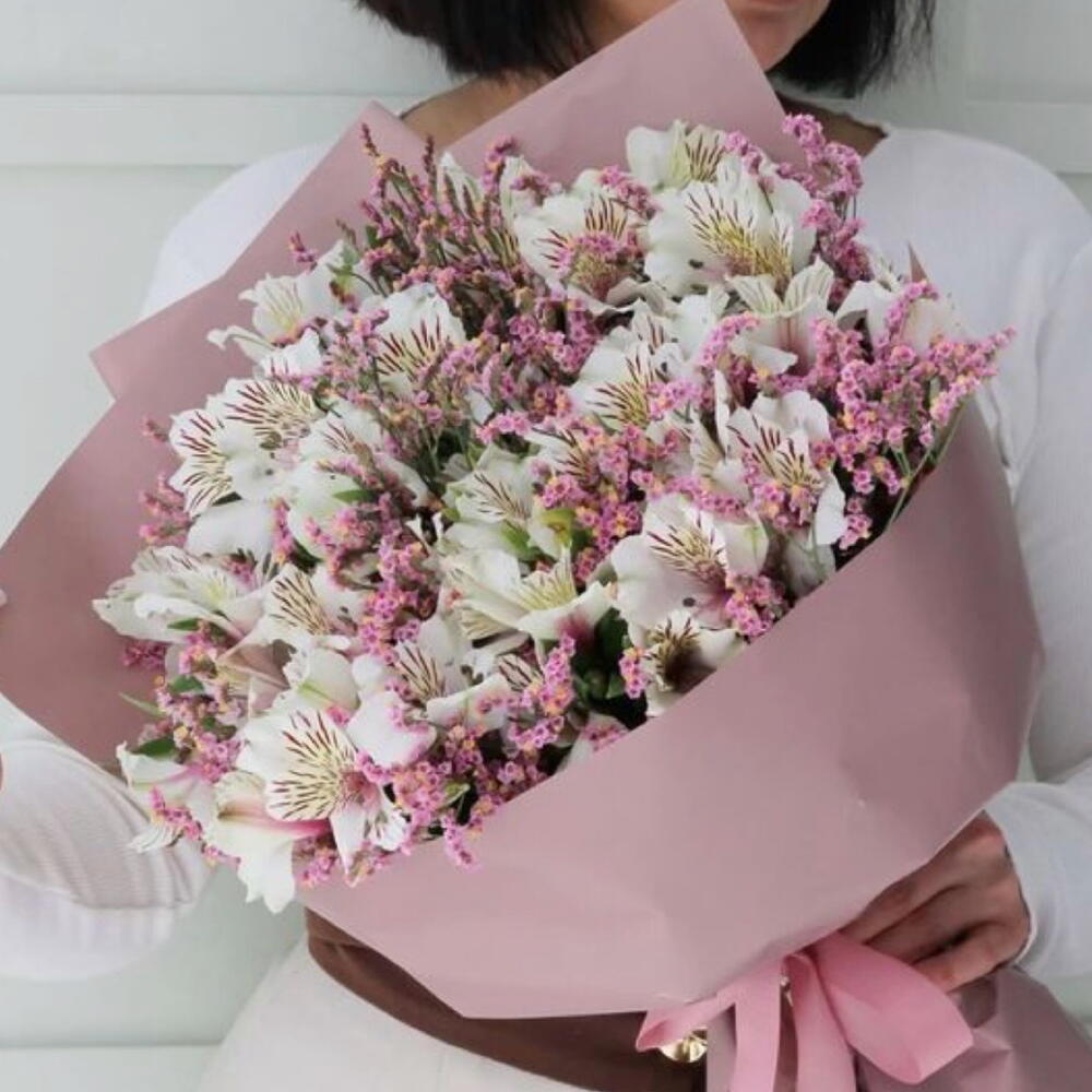 Bouquet of alstroemeria and gypsophila. A charming, sweet bouquet in bright colors - perfect for birthdays or a baby shower.