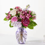Amethyst Dreams Bouquet (mums, stock, alstro, rose + vase)