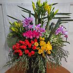 Es un arreglo elegante, de gran tamaño por lo cual nosotros nos encargamos de entregarlo bien y en perfectas condiciones. Así tal cual las fotos seria el arreglo que le llegaría. Es una caja recistente de madera. Color negra. Las orquídeas van en su maceta para que las cuide y les dure bastante tiempo.