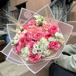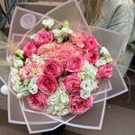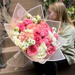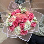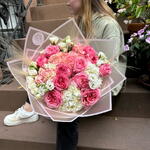 This bouquet, made up of roses, hydrangeas, spray roses, stipa and lisianthus, embodies the sophistication of nature. The roses with their velvety petals and unusual shades add a touch of sophistication and nobility to the composition. White and pink hydrangea, with its lush inflorescences, symbolize generosity and richness of emotions, filling the bouquet with volume and softness. Lisianthus and stipa bring a touch of freshness and elegance. Add to favorite to not lose! HOW TO CARE OF FLOWERS? Do not remove the wrapping paper from the bouquet, so then flowers will live longer Change the cold water in a vase every day Keep the vase clean Cut the stem of each flower every two days Keep the bouquet out of a direct sun, drafts and heaters Add the flower food 2-3 days after you’ve bought your bouquet (We add the flower food to every bouquet)