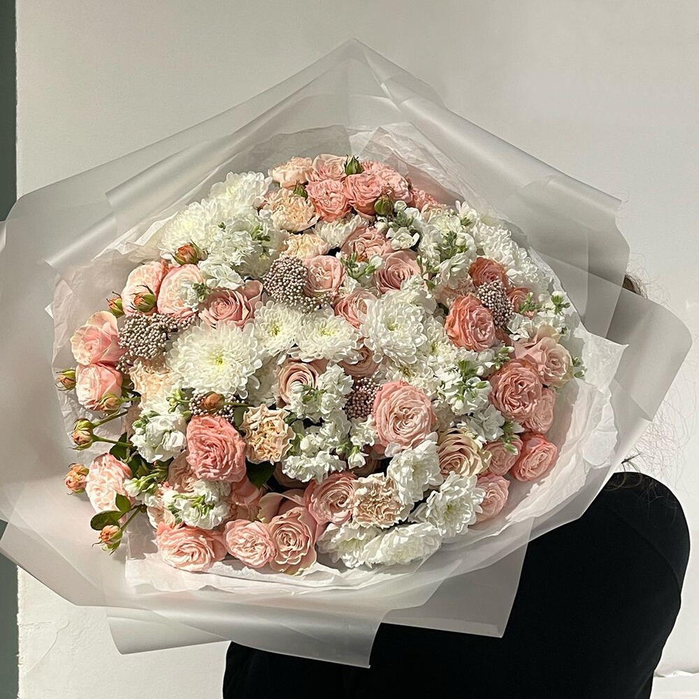 Matthiola - 7 pcs Bush rose - 9 pcs chrysanthemum altai - 7 pcs dianthuses - 5 pcs
