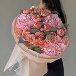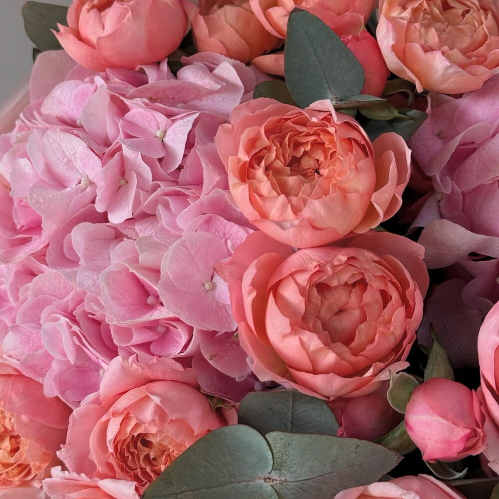 Eucalyptus - 3 pcs Bush rose - 10 pcs Pink hydrangea - 3 pcs