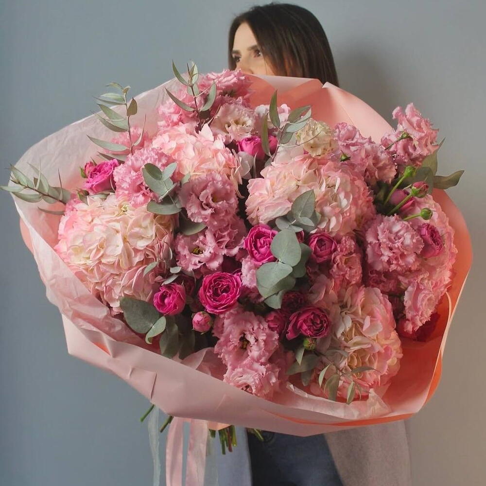 This designer bouquet is simply stunning in its aristocratic elegance and luxury. It harmoniously combines a beautiful blooming hydrangea and a captivating spray rose. Five large, lush hydrangeas will delight the eye with their delicacy, while four spray roses add sophistication and chic. Seven exotic Extreme flowers add a vibrant and unique touch to the arrangement. Surprise your loved ones with this exquisite gift!