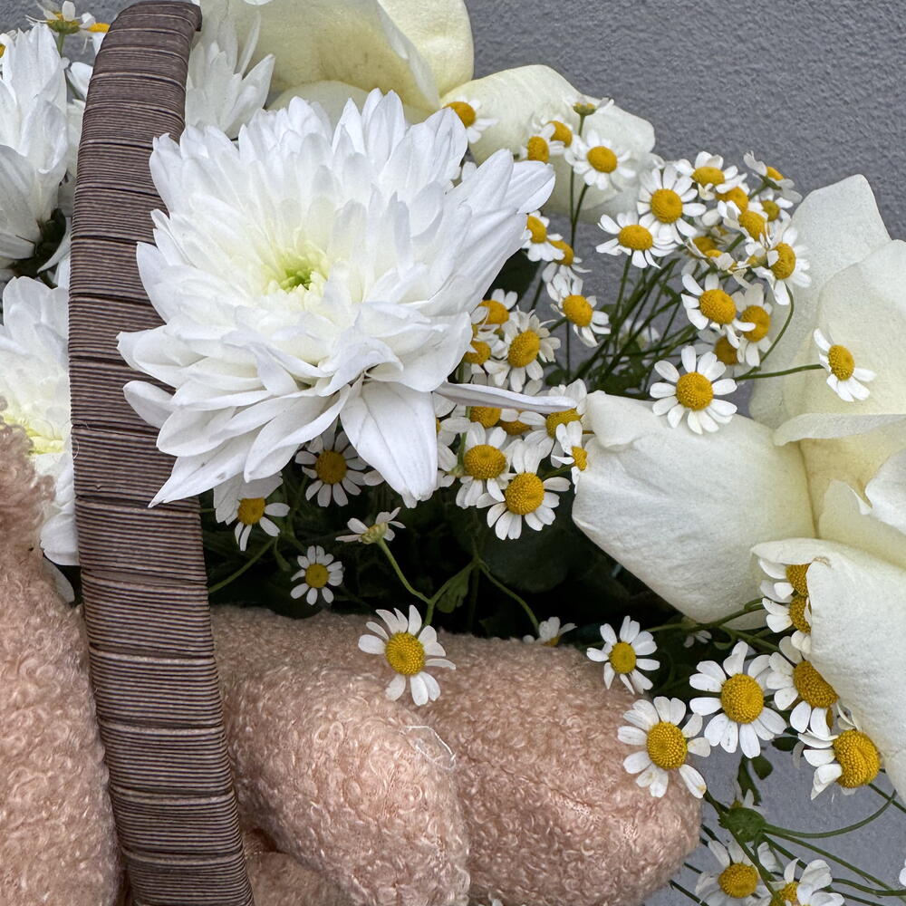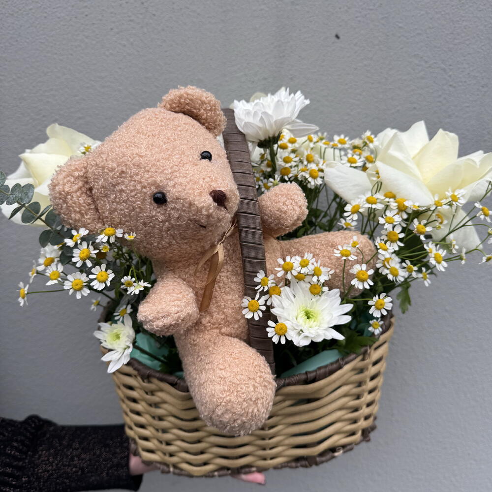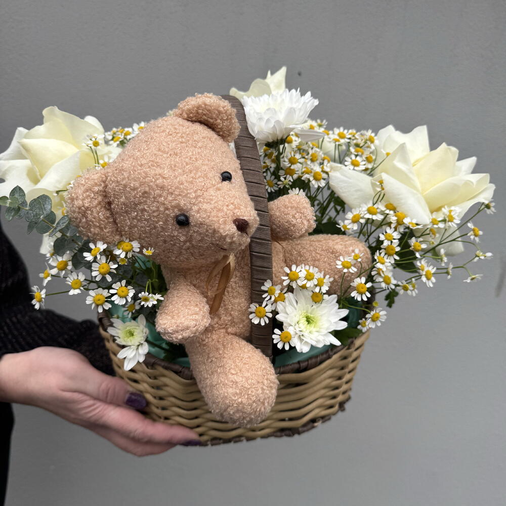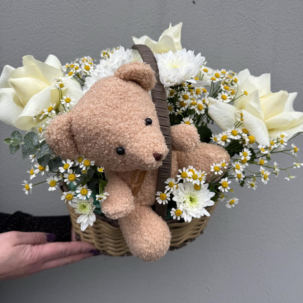 Chrysanthemum - 1 pcs Bear - 1 pcs chamomile - 5 pcs prantsusse roses - 3 pcs