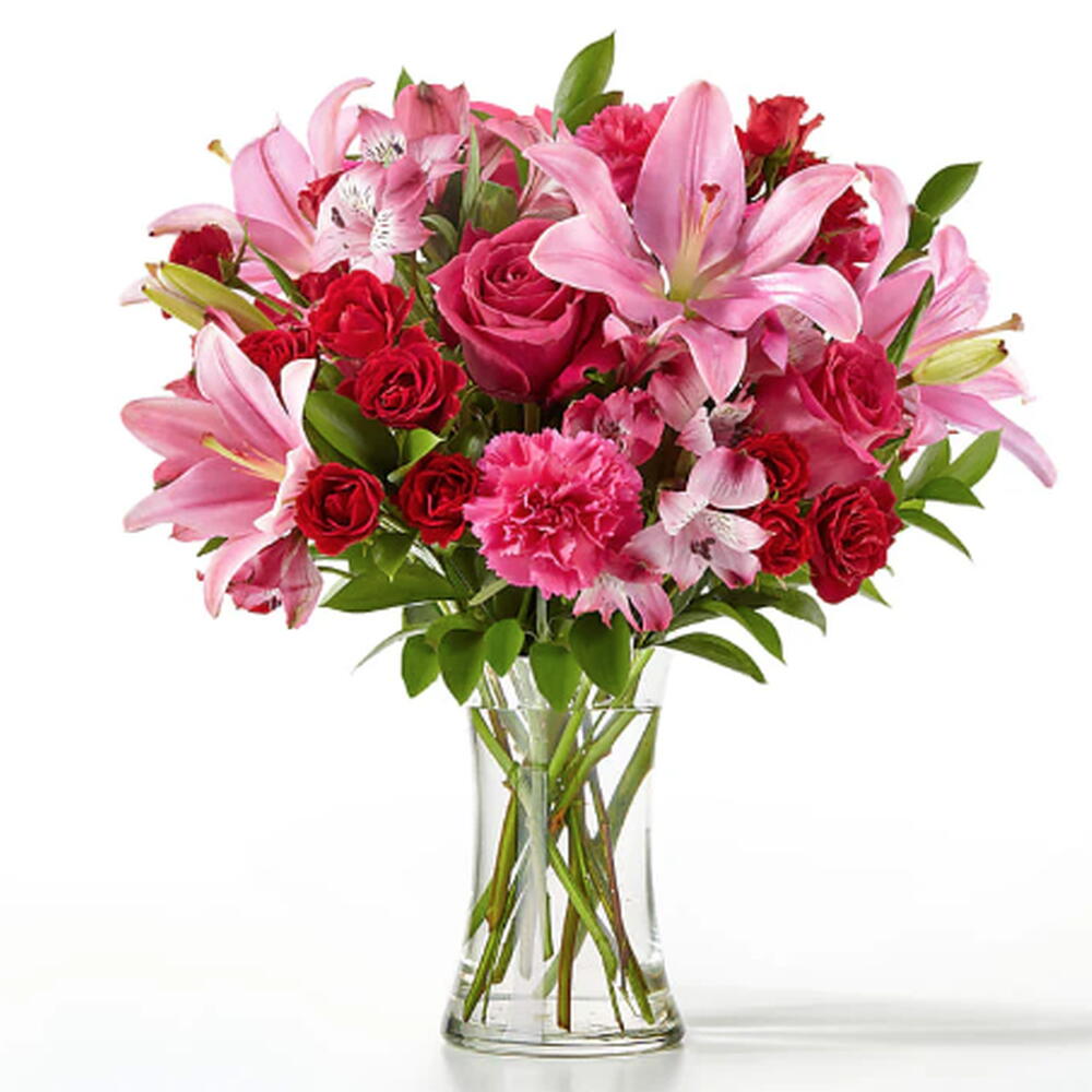 Only the berry best for your love! Overflowing with red and pink florals, this arrangement will dazzle for all of lifes sweetest moments. Details Designed by florists, ready to display. For long–lasting blooms, replace the water daily. We suggest trimming the stems every couple days. Pet Safety Precautions: This bouquet or plant may include flowers and foliage that are known to be toxic to pets. To keep them safe, be sure to keep this arrangement out of your pets reach.