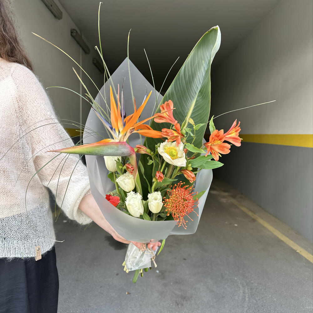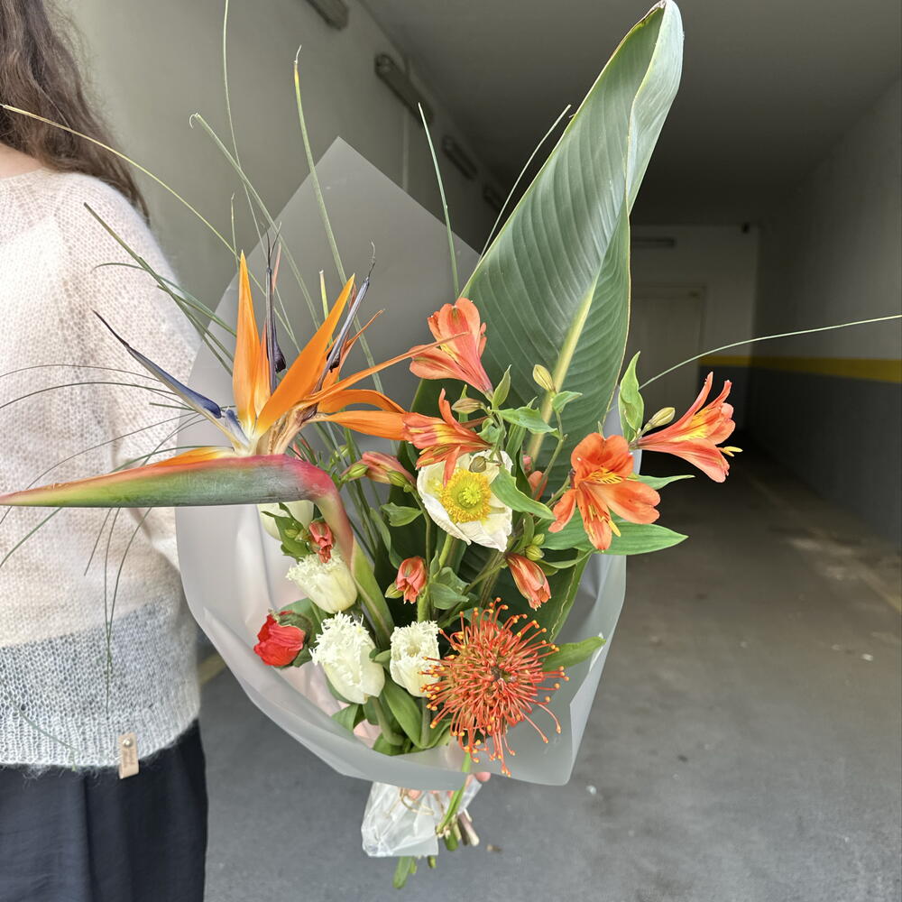 Alstroemeria - 2 pcs Tulip - 4 pcs strelitzia - 1 pcs new - 1 pcs bergrass - 1 pcs poppy - 2 pcs
