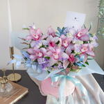 Lisianthus - 10 pcs purple cymbidium orchids - 10 pcs blue foliage - 10 pcs