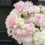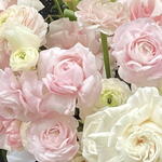Ecuadorian rose - 30 pcs Oasis - 4 pcs box hat - 1 pcs ranunculus - 15 pcs tulipa - 30 pcs