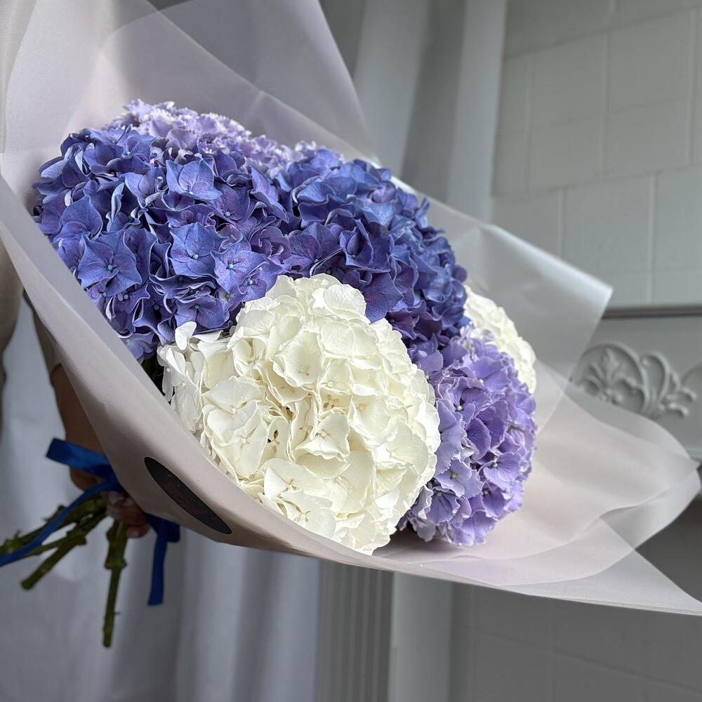 Satin ribbon - 1 pcs hortensia - 7 pcs greeting card - 1 pcs foliage - 2 pcs