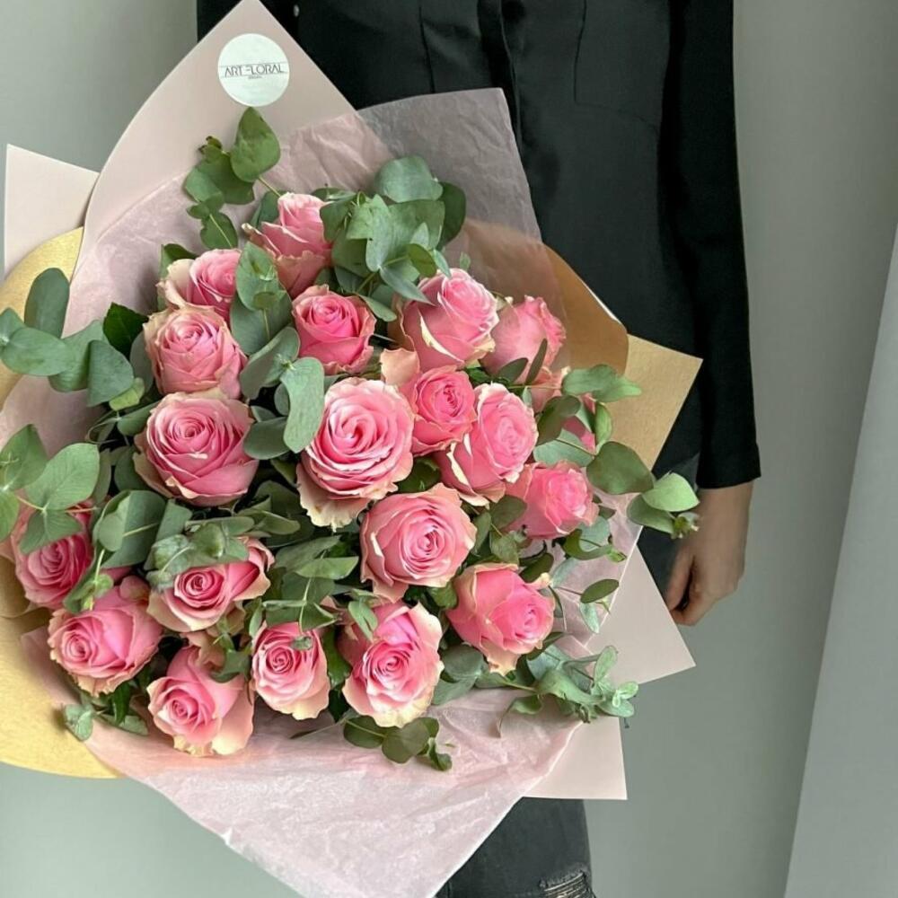 Blumenstrauß Herzliche Umarmung Ein Arrangement aus dezenten rosafarbenen Rosen gemischt mit dem pastellfarbenen und aromatischen Eukalyptus, verpackt in feines Seidenpapier und passende Design-Folie. Wir achten ständig auf die letzten Trends im Bereich des Floristikdesigns und unsere Bouquets sind die Reflexion davon.Bei der Zusammenstellung verwenden wir nur ganz frische Blumen und die modernsten Materialien. Unser Team steckt besondere Liebe zum Detail in jedes Arrangement, deshalb finden Sie immer einen Sticker mit unserem Logo und ein Firmen Bändchen als Qualitätssiegel an jedem Strauß. Hinweise: Die Erstellung jedes Arrangements erfolgt individuell mit viel Leidenschaft für unser Handwerk und somit ist auch jeder Strauß ein Einzelstück und kann etwas von Abbildungen abweichen. Es handelt sich um ein Naturprodukt, dadurch sind naturbedingte Abweichungen in der Form, Farbe oder Größe zu den Angaben möglich! Es wurde unter anderem Saisonware verwendet und können nach Bedarf durch unsere Floristen ersetzt werden. Das Erscheinungsbild und die Farbgebung bleiben erhalten. Alle Preise inkl. MwSt. und zzgl. Lieferkosten Jetzt ganz bequem bestellen und an Ihre Wunschadresse liefern lassen.