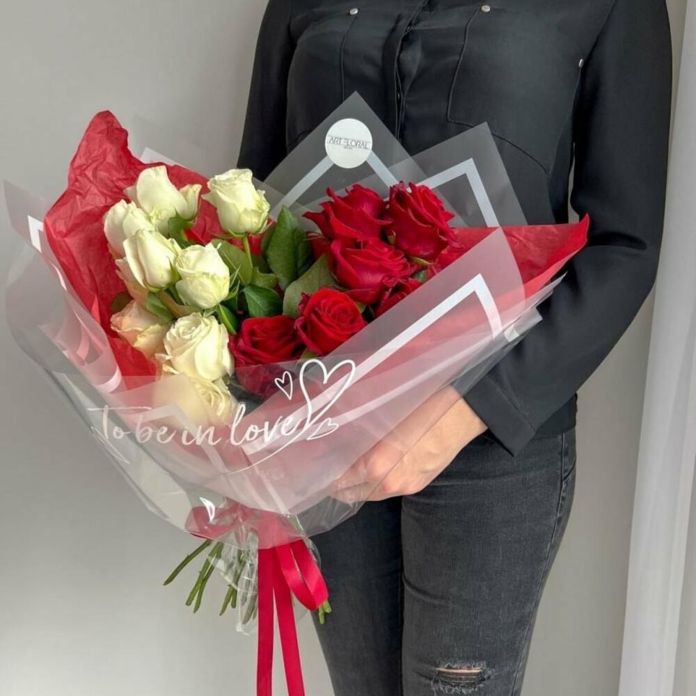 Blumenstrauß To be in love Ein ausgefallenes Arrangement aus frischen großblütigen roten und weißen Rosen verpackt in feines Seidenpapier und Design Folie mit dem Schriftzug To be in love. Wir achten ständig auf die letzten Trends im Bereich des Floristikdesigns und unsere Bouquets sind die Reflexion davon. Bei der Zusammenstellung verwenden wir nur ganz frische Blumen und die modernsten Materialien. Unser Team steckt besondere Liebe zum Detail in jedes Arrangement, deshalb finden Sie immer einen Sticker mit unserem Logo und ein Firmen Bändchen als Qualitätssiegel an jedem Strauß. Hinweise: Die Erstellung jedes Arrangements erfolgt individuell mit viel Leidenschaft für unser Handwerk und somit ist auch jeder Strauß ein Einzelstück und kann etwas von Abbildungen abweichen. Es handelt sich um ein Naturprodukt, dadurch sind naturbedingte Abweichungen in der Form, Farbe oder Größe zu den Angaben möglich! Es wurde unter anderem Saisonware verwendet und können nach Bedarf durch unsere Floristen ersetzt werden. Das Erscheinungsbild und die Farbgebung bleiben erhalten. Alle Preise inkl. MwSt. und zzgl. Lieferkosten Jetzt ganz bequem bestellen und an Ihre Wunschadresse liefern lassen.