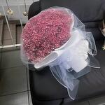 Elegant pink baby’s breath bouquet wrapped in white tulle, perfect for special occasions.
