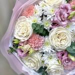 Eustoma - 4 pcs packaging - 5 pcs dianthus - 5 pcs eucalyptus - 2 pcs chrysanthemum - 3 pcs roses - 7 pcs