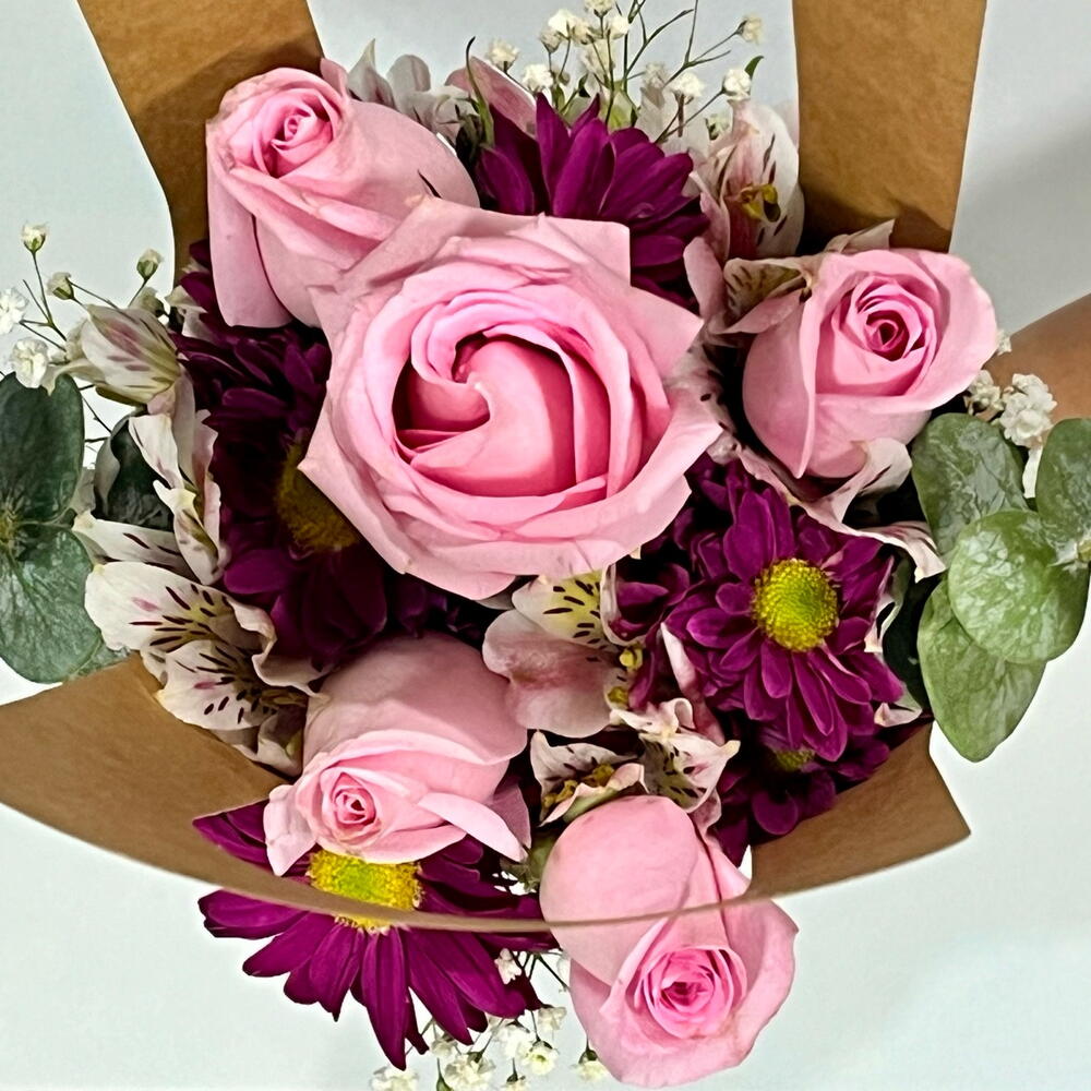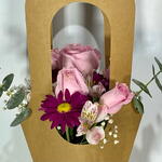 Gypsophila - 4 pcs pink roses - 4 pcs astromelia - 4 pcs dolar - 2 pcs moreliana - 4 pcs