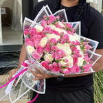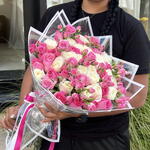 Candy Pink and White Avalance Rose Mix Fanta Baby Roses Bouquet