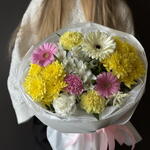 Alstroemeria - 2 pcs Gerbera - 3 pcs hrizantema - 2 pcs disntus - 4 pcs