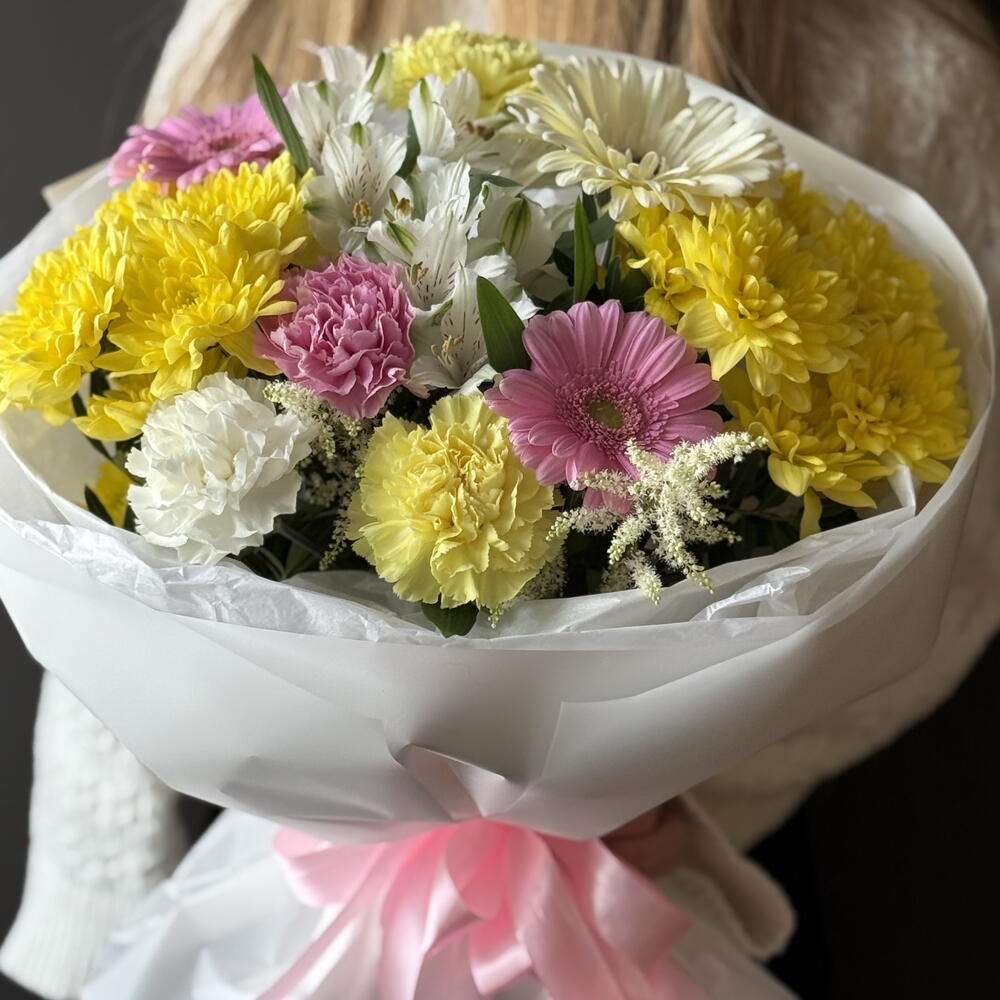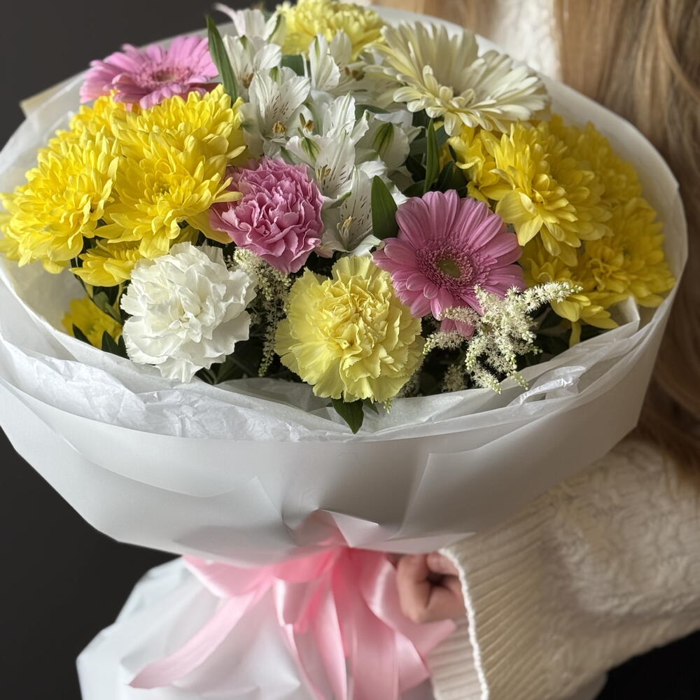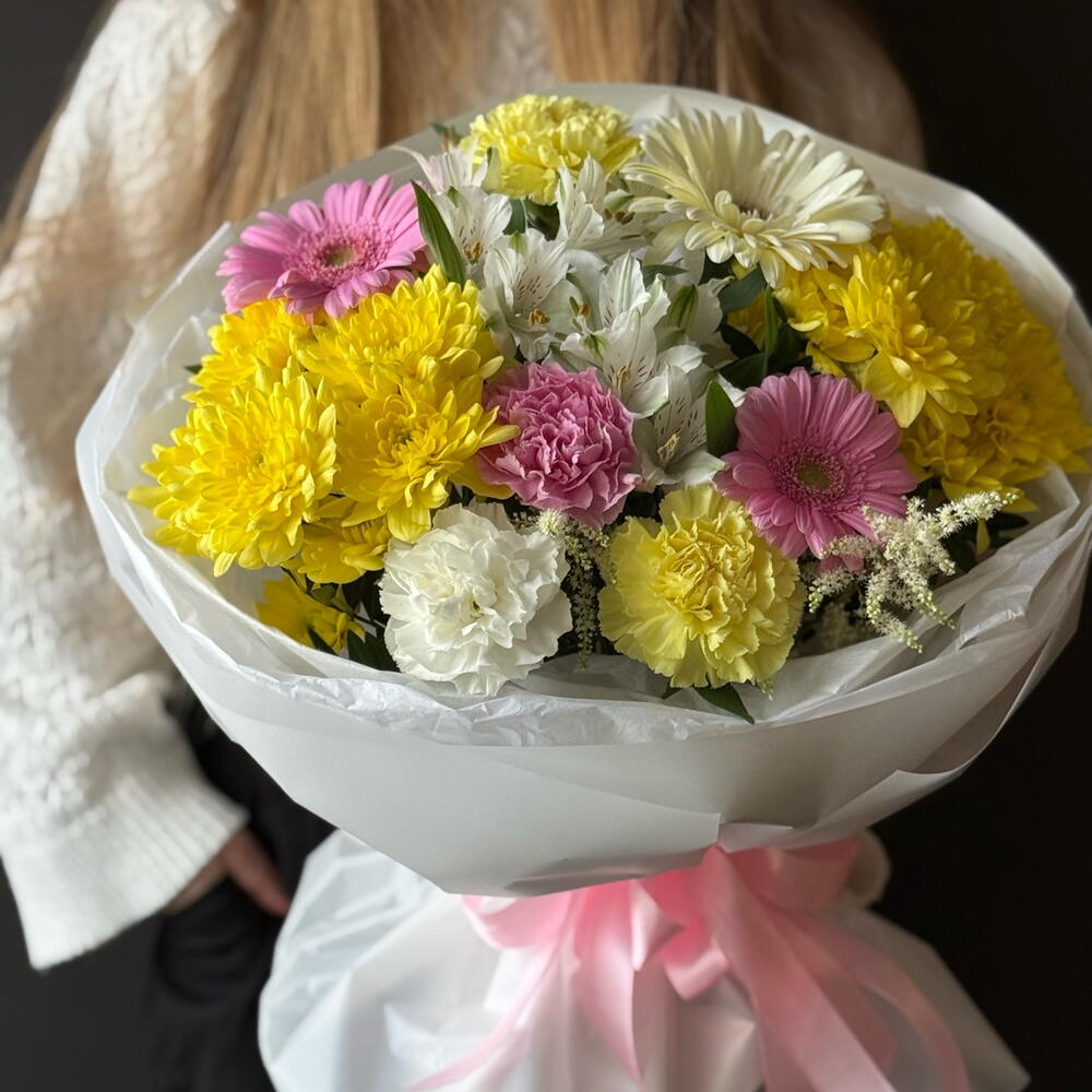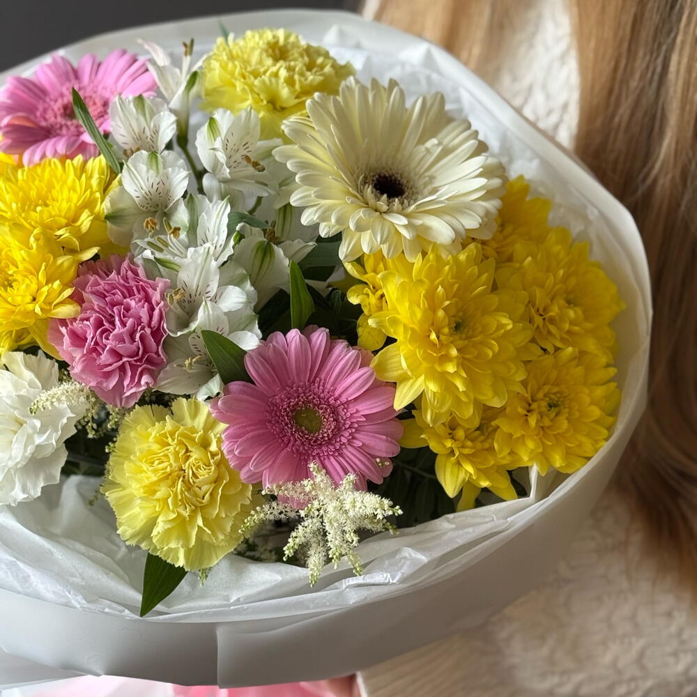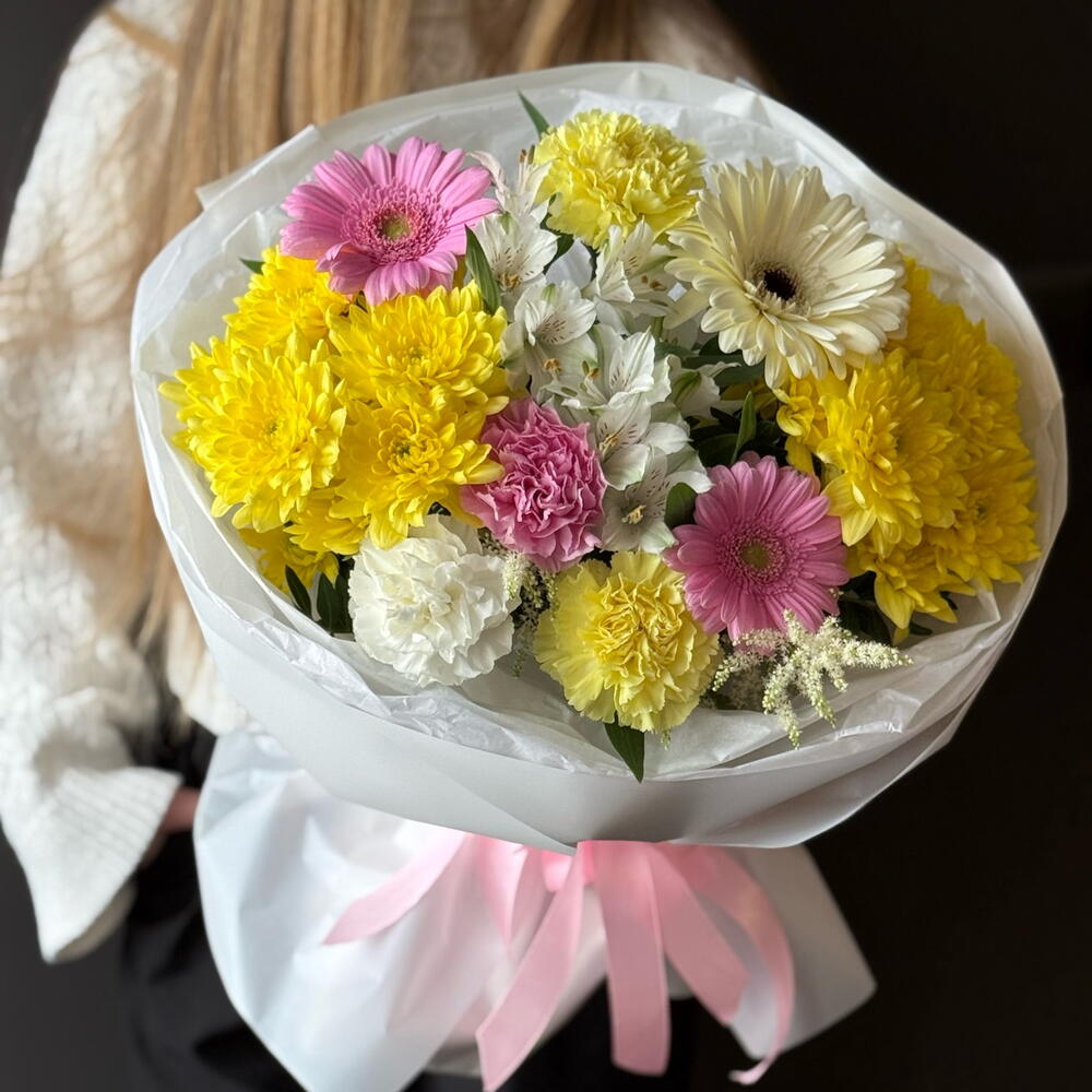 Alstroemeria - 2 pcs Gerbera - 3 pcs hrizantema - 2 pcs disntus - 4 pcs