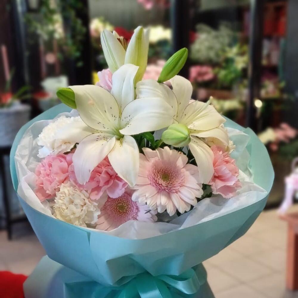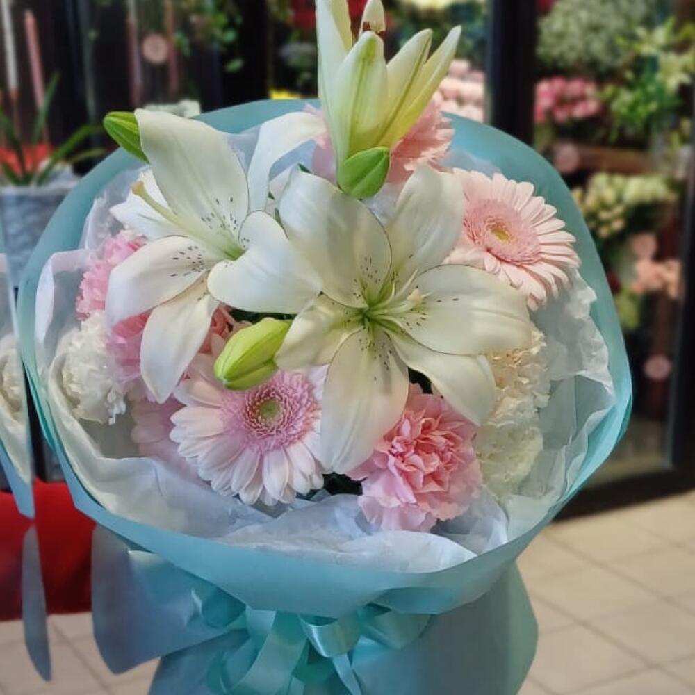 Lily - 1 pcs Gerbera - 3 pcs dianthus - 7 pcs