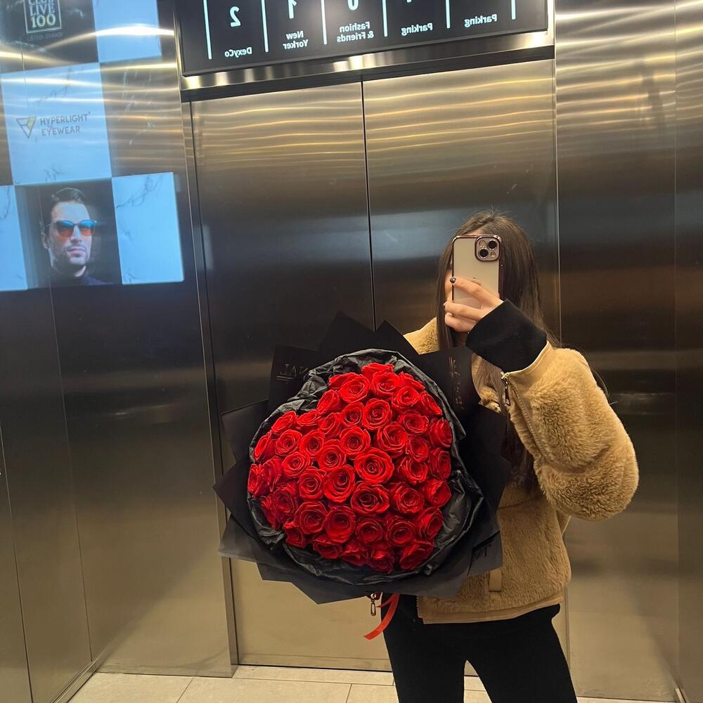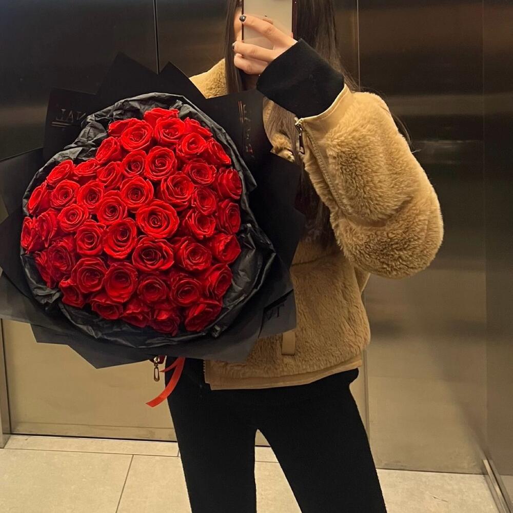 Ribbon - 1 pcs cellophane - 8 pcs black paper - 3 pcs roses - 61 pcs