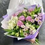 Chrysanthemum Santini - 3 pcs Rose - 5 pcs decorative greenery - 2 pcs alstroemeria mix europe - 4 pcs