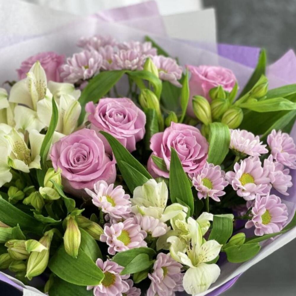 Chrysanthemum Santini - 3 pcs Rose - 5 pcs decorative greenery - 2 pcs alstroemeria mix europe - 4 pcs