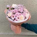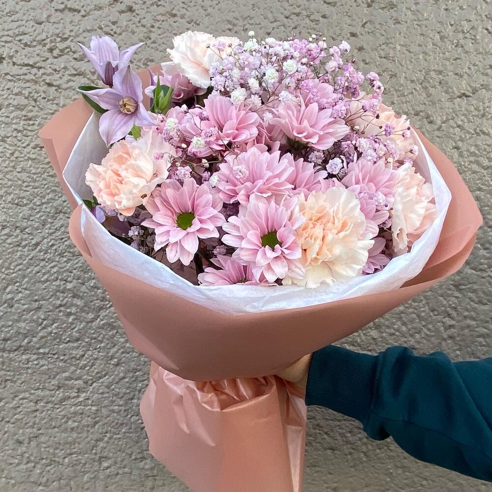 Clematis - 1 pcs carnation - 5 pcs chrysanthemum - 3 pcs gypsophila - 1 pcs