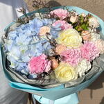 Limonium - 2 pcs Clematis - 1 pcs rose - 2 pcs hydrangea - 1 pcs spray rose - 1 pcs carnation - 7 pcs