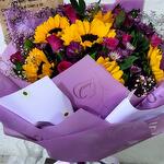 Bouquet Girasoles con rosas fiucsas