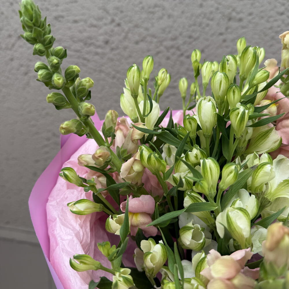An exceptional bouquet of alstroemerias and snapdragons is a graceful composition that combines subtle delicacy with a striking form. Alstroemerias, known as the flowers of friendship, bring lightness and a romantic character to the bouquet, delighting with their small, multicolored petals. Their natural elegance beautifully harmonizes with the majestic snapdragons, which add height, dynamism and nobility to the arrangement.