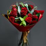 Eucalyptus - 3 pcs red roses - 15 pcs