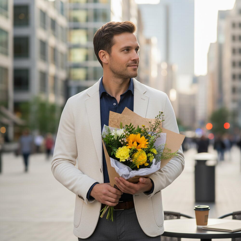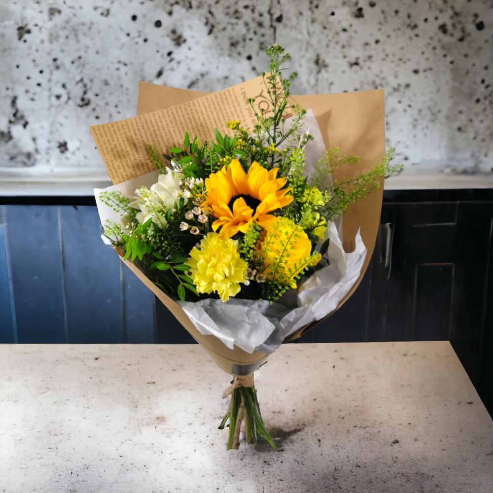 A wonderful gift! A bouquet of various yellow, white, green flowers, we will prepare your order with love! If you have any wishes, be sure to leave them in the comments. Attention! *IMPORTANT. The photo is provided as an example, the color and type of flowers and the color of the paper may change depending on the season and the range of flowers available at that time. Floristics is a creative and dynamic process, it is impossible to prepare the same composition twice.