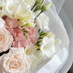 Eustoma - 3 pcs Hydrangea - 2 pcs Freesia - 7 pcs rose spray - 2 pcs