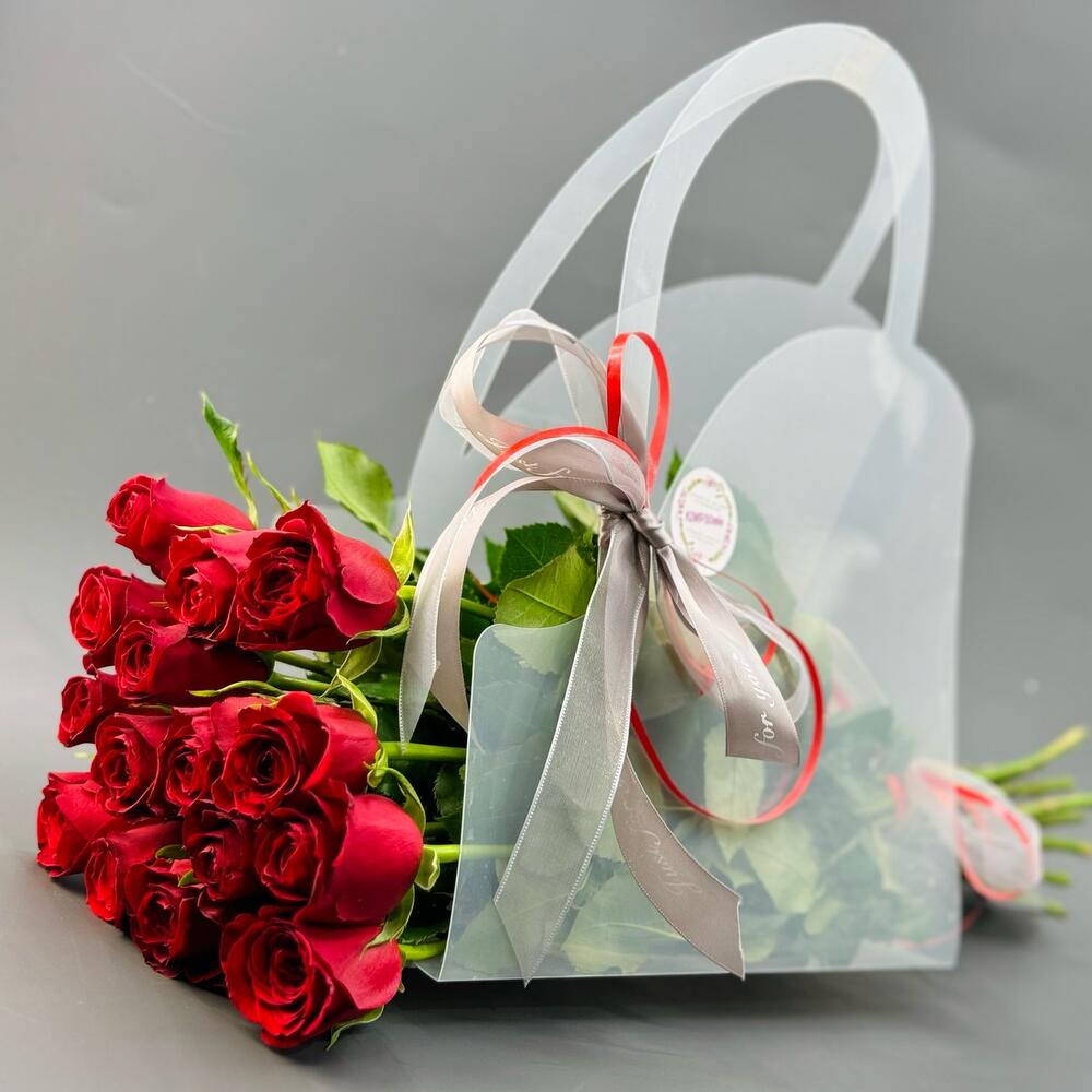 red roses - 15 pcs original transparent gift bag - 1 pcs