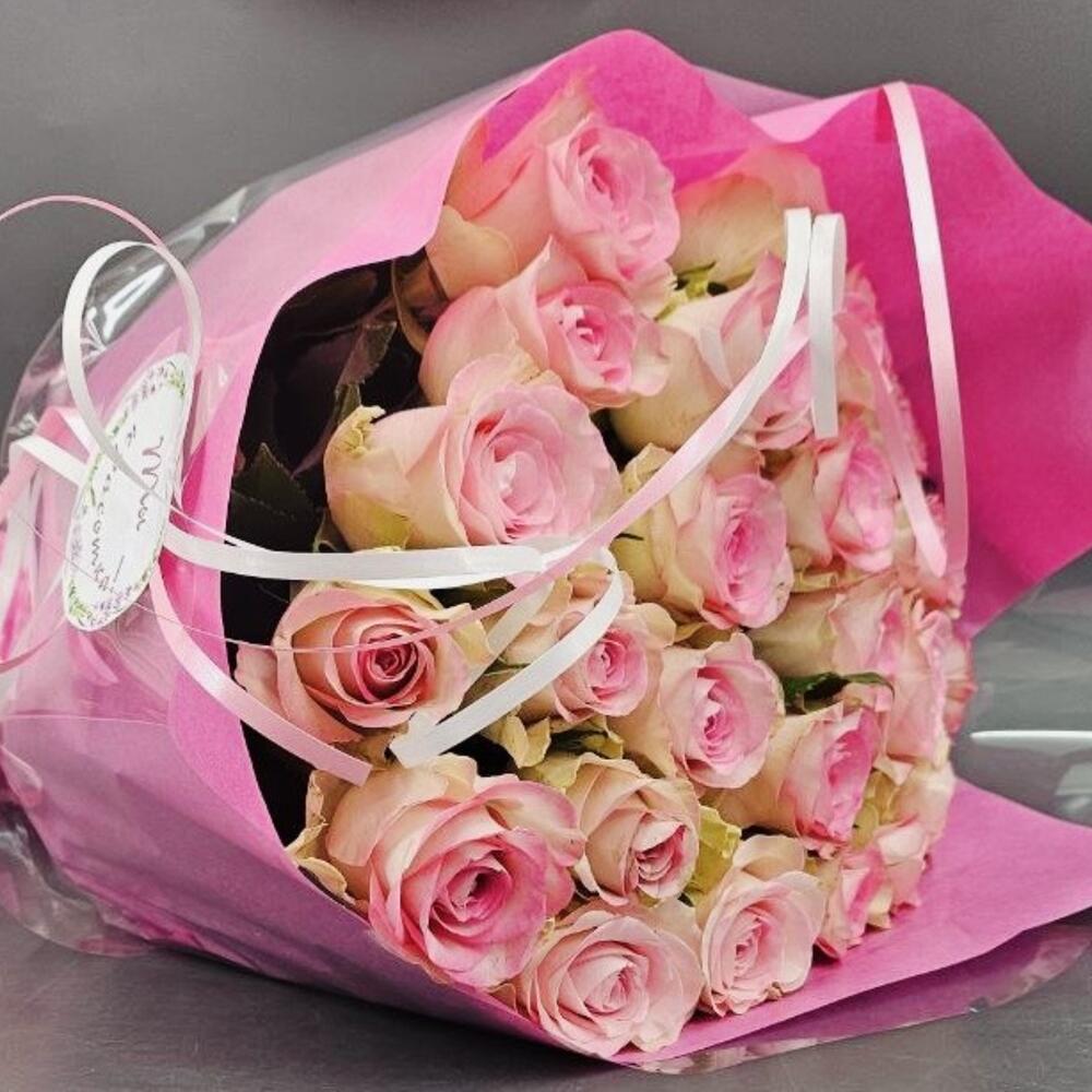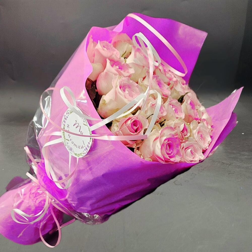Bouquet of 25 soft pink roses 50 cm (large bud) in festive packaging
