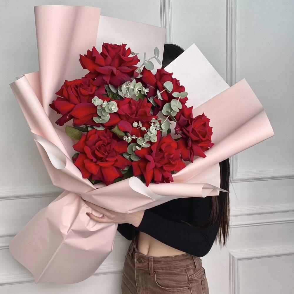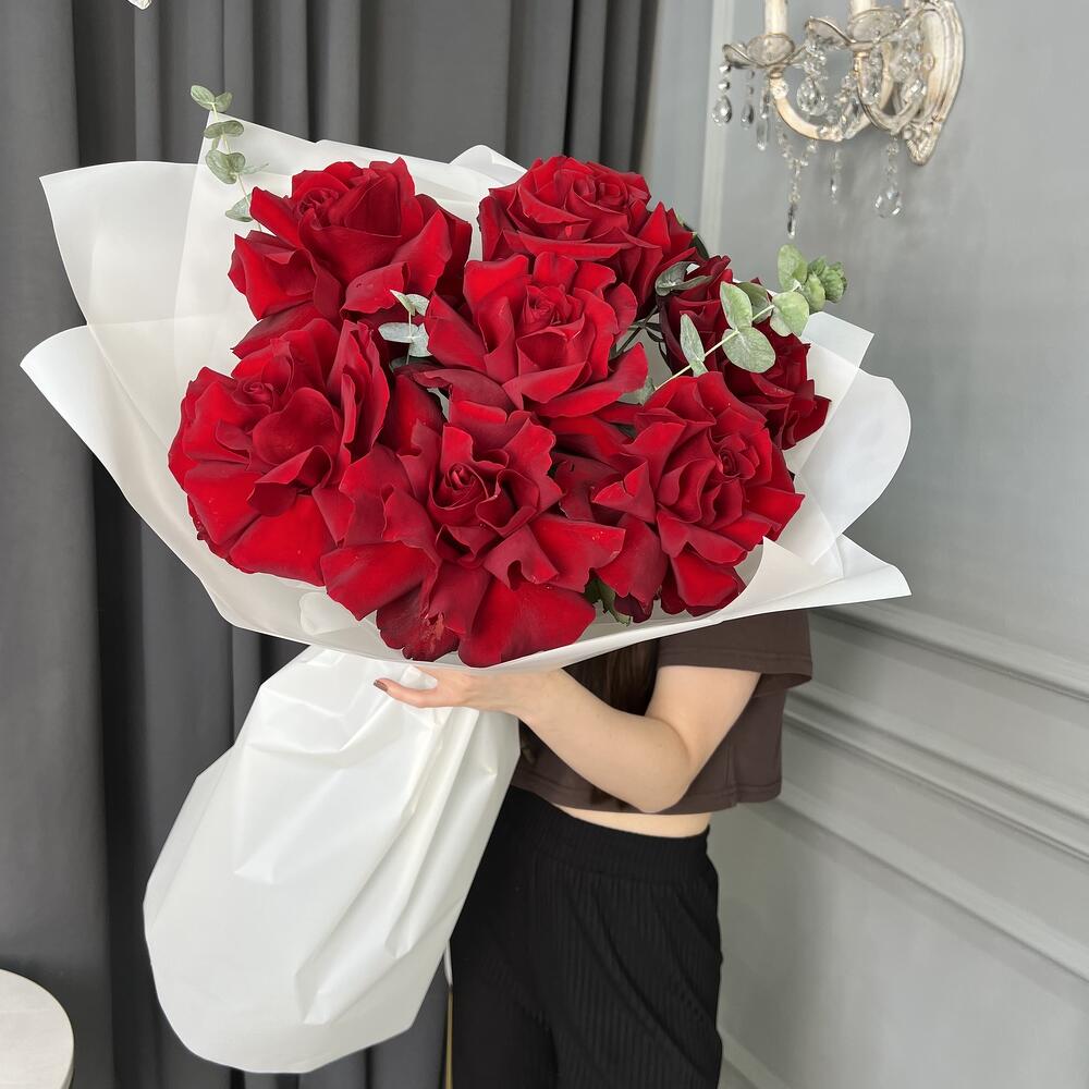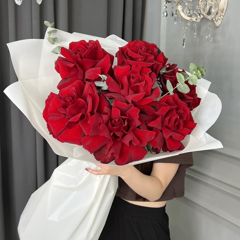 A small bouquet of 7 inverted French roses will win her heart A small stylish bouquet of 7 handmade Ecuadorian roses will win her heart.