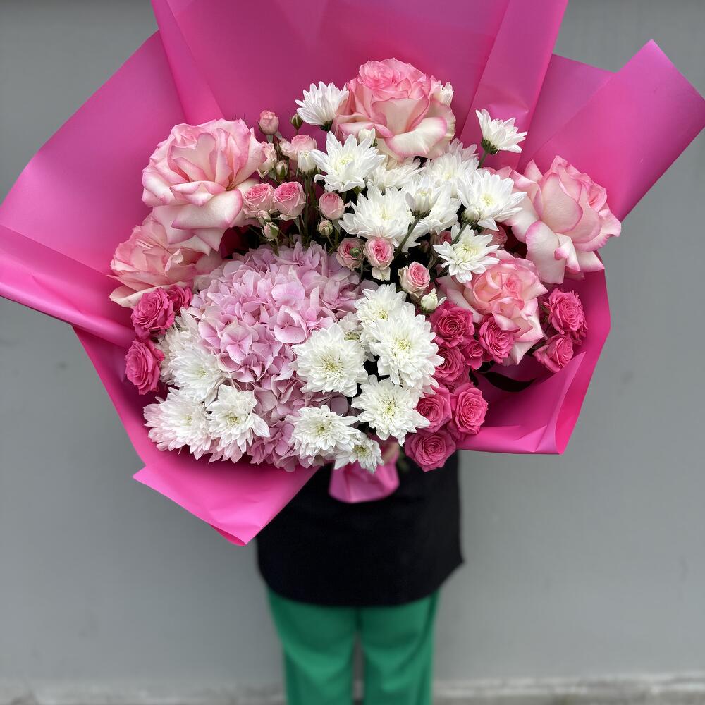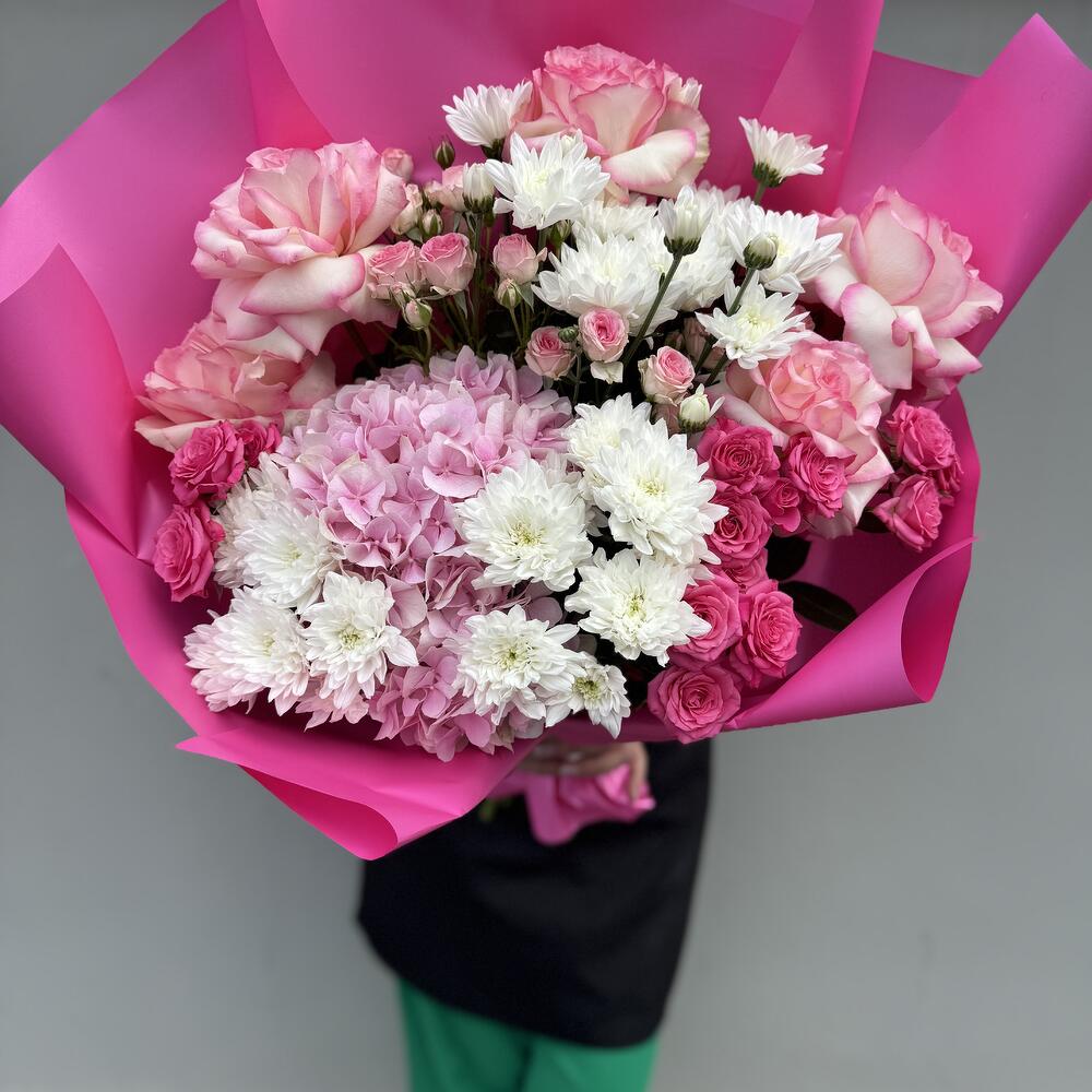 Hydrangea - 1 pcs roos hollahd - 10 pcs kruzanteem - 5 pcs kobarroos - 10 pcs peonies - 7 pcs