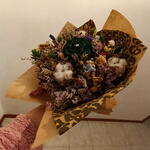 statice mix - 10 pcs rosa preservada - 1 pcs dried flowers mix - 10 pcs celofan - 1 pcs papel pardo - 1 pcs fita laço cordel - 3 pcs papel detalhes - 1 pcs fita cetim - 1 pcs flor botão algodão - 2 pcs