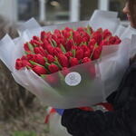 Bouquet of 101 tulips in decorative paper.