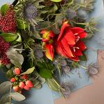paper - 2 pcs hypericum - 3 pcs eucolipt - 1 pcs skimia - 1 pcs amaryllis - 1 pcs
