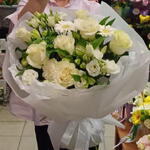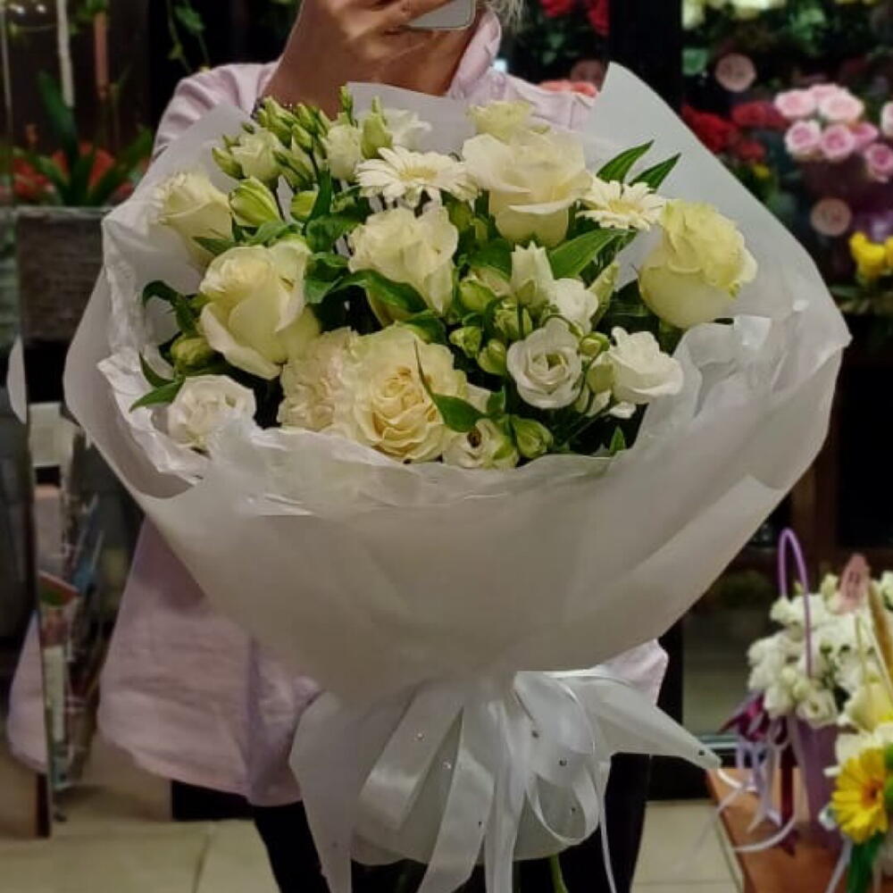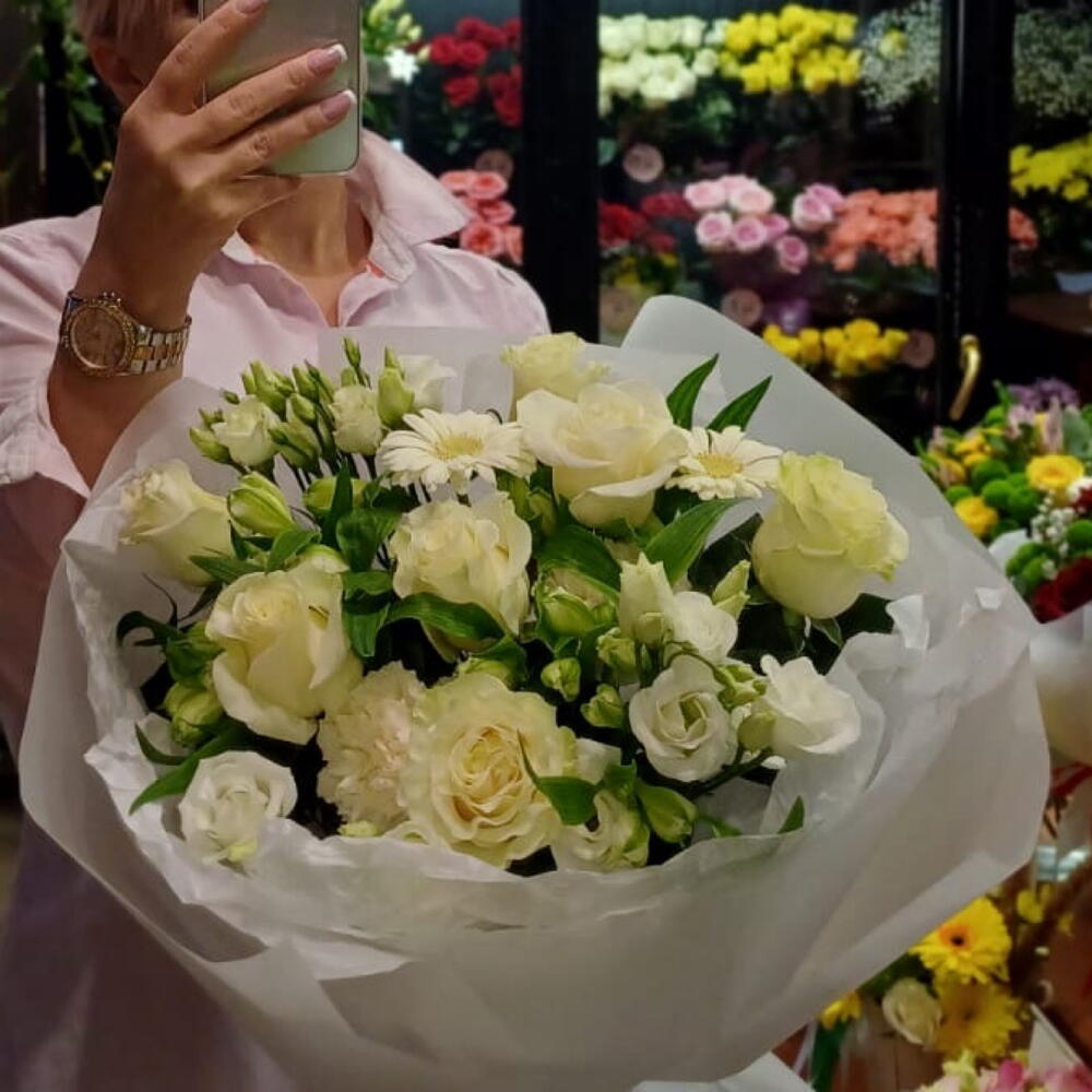 Eustoma - 3 pcs Alstroemeria - 4 pcs Gerbera - 2 pcs rose ecuador - 5 pcs disntus - 3 pcs