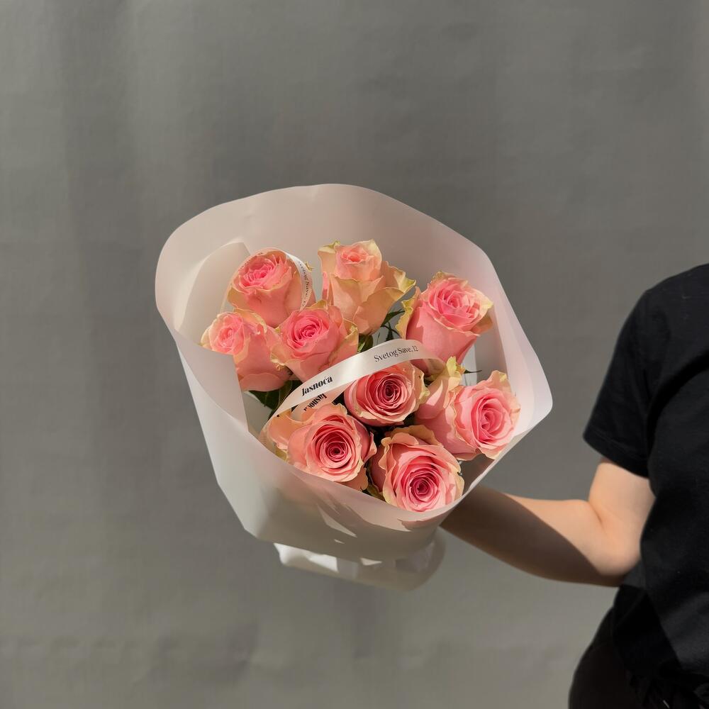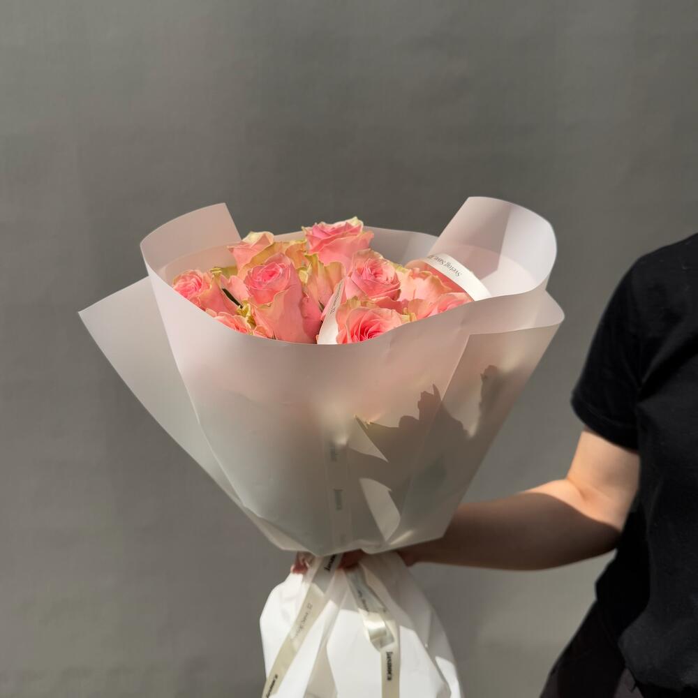 Vibrant bouquet of pink roses. Perfect for any occasion. The shade of the roses may vary due to seasonal availability. Bouquet sizes are approximate. What you get: • A detailed care guide to help your flowers last longer • Flower food to preserve freshness up to 5-7 days • A gift bag for safe delivery