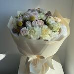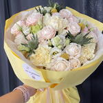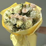 Eustoma - 5 pcs dianthus - 6 pcs craspedia - 3 pcs rose spray - 4 pcs green additions - 3 pcs