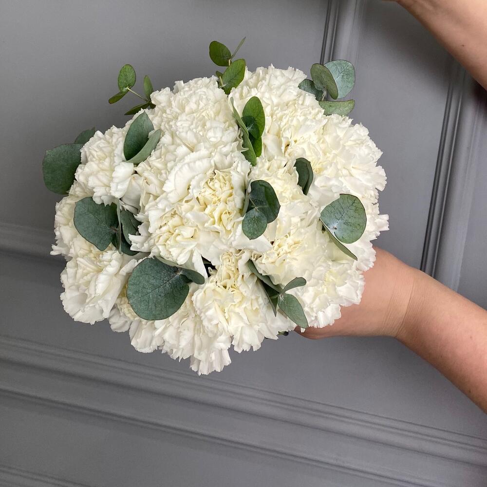 dianthus - 19 pcs eucalyptus - 3 pcs