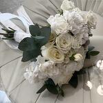 The brides snow-white bouquet of eustoma, roses and dianthus will not leave her indifferent!