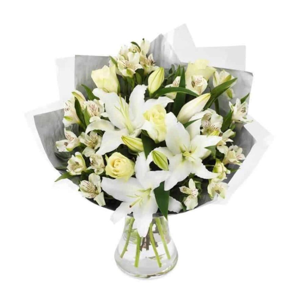 Alstroemeria - 5 pcs Rafia - 1 pcs rose - 5 pcs lilies - 2 pcs