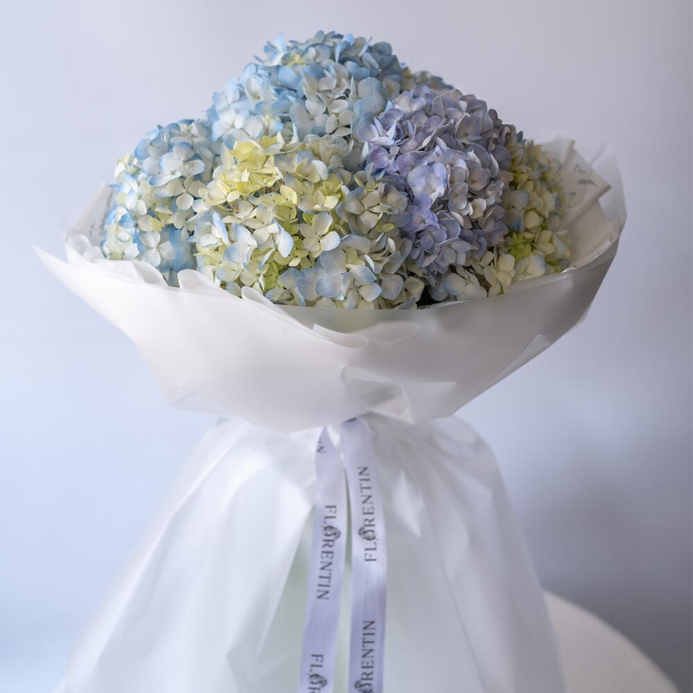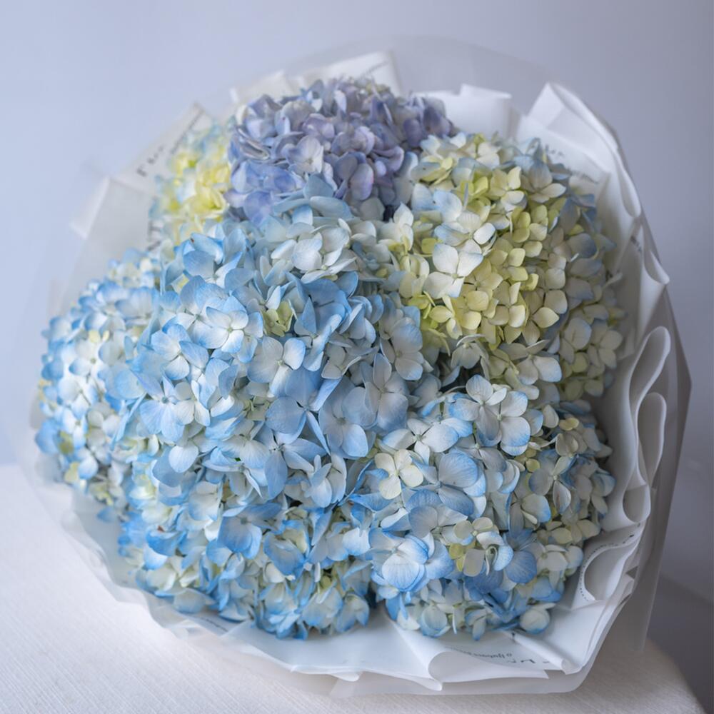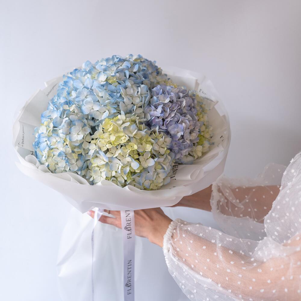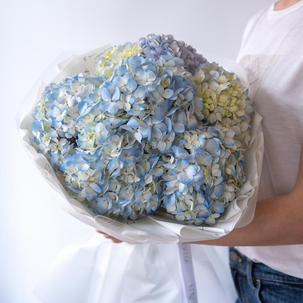 At the photo a bouquet of 7 pcs(s) of Hydrangea Blue is presented. The bouquet consists of 7 pcs(s) of Hydrangea Blue. Indulge in the beauty of nature with our flower bouquets, perfect for any occasion. We are deeply passionate about flowers and always prioritize freshness. While minor composition changes may occur, each bouquet is a testament to our love for these blossoms. Experience the magic of our florists and bring a touch of nature's freshness and our unwavering love for flowers to your day. Please do not hesitate to contact us, if any questions.